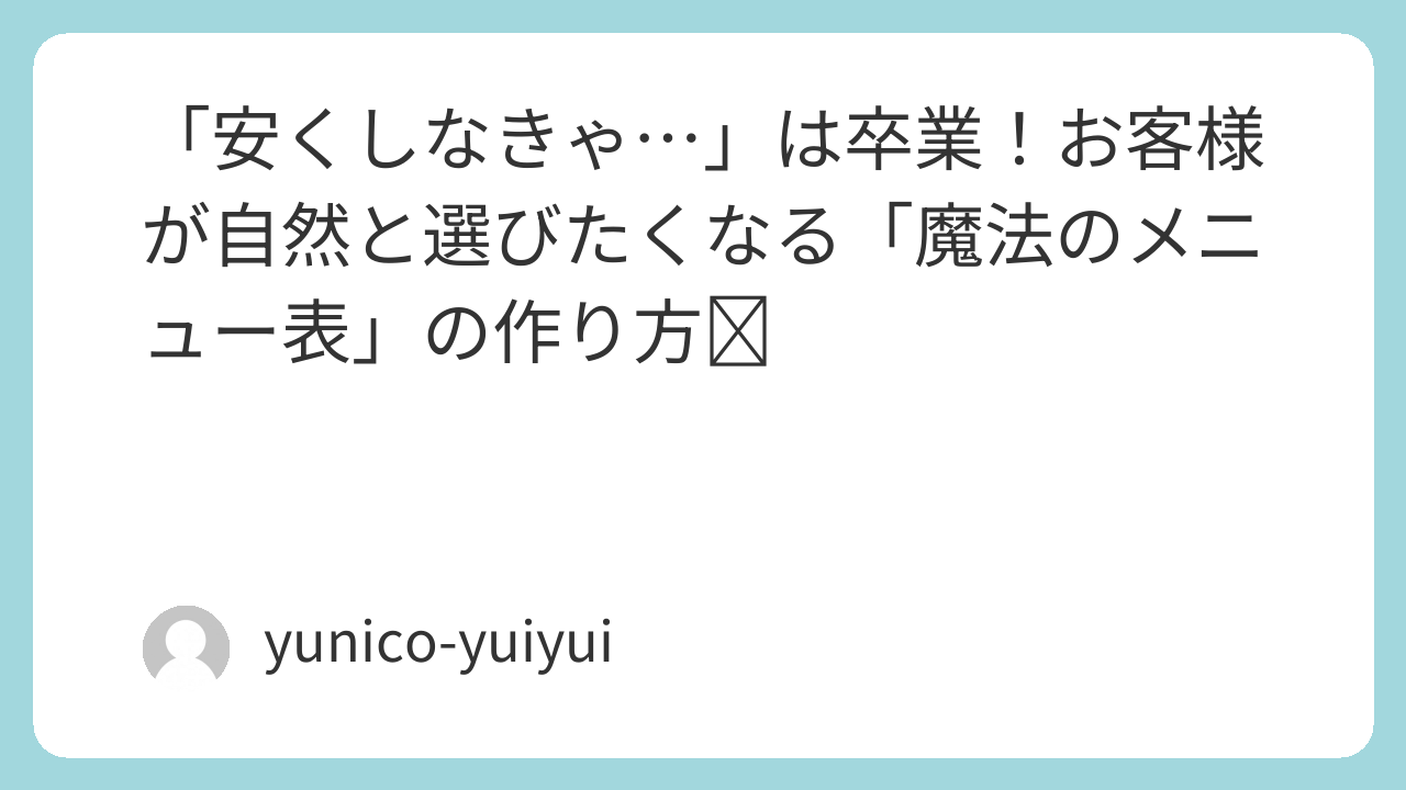 「私の場合はどんなメニュー構成がいいの?」「ネーミングが思いつかない💦」という方は、 YUNICOの「壁打ちコンサル」で一緒に考えましょう! あなたの強みを見つけて、世界に一つのメニュー表を作ります📝✨